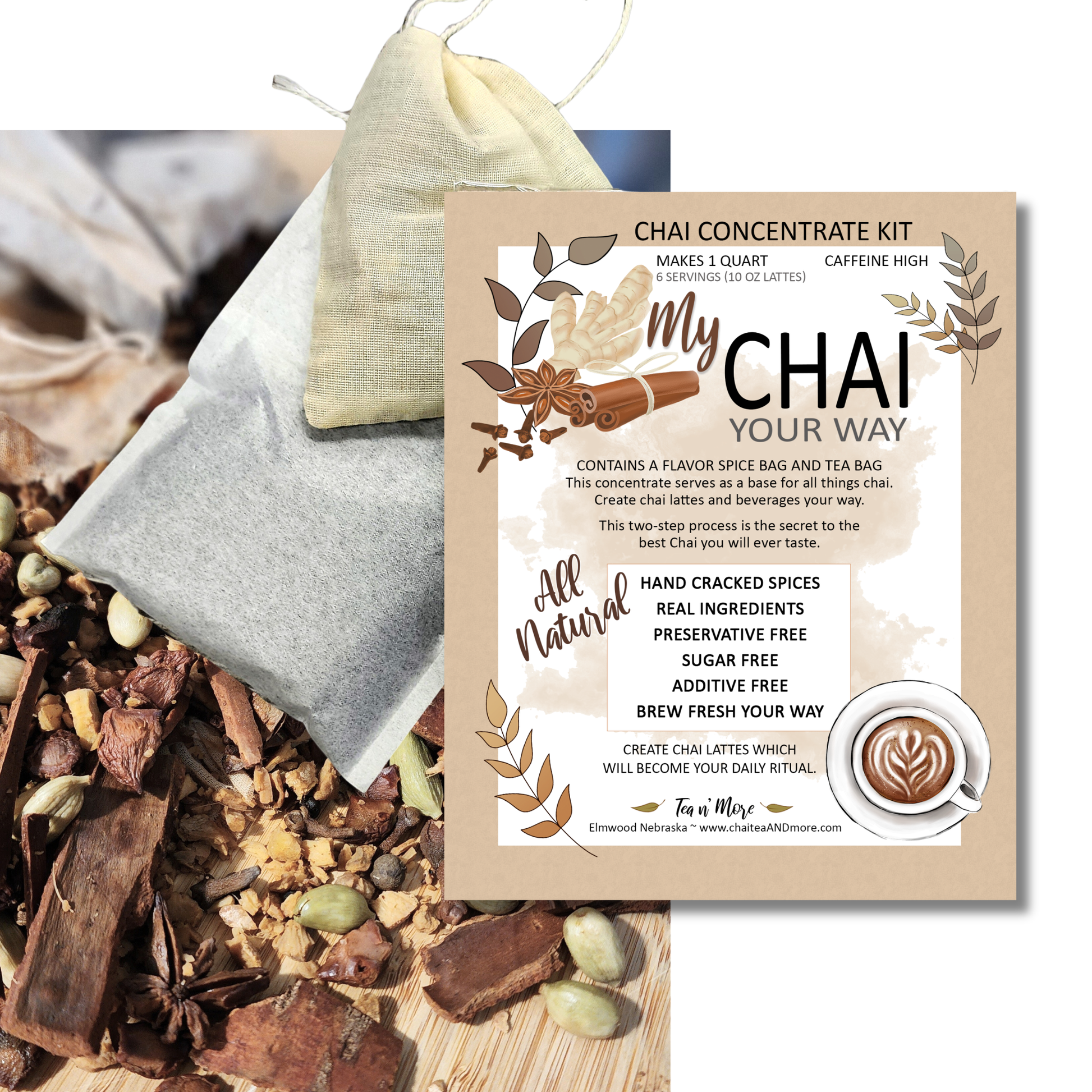 Each kit makes a quart of concentrate which can be stored in the refrigerator and used throughout the week to make the best homemade chai lattes and beverages.